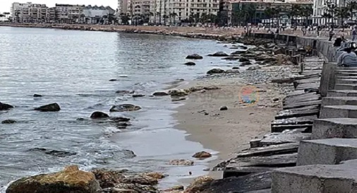 من صور ومقاطع فيديو تظهر تراجع مياه البحر عن شاطئ محطة الرمل بالإسكندرية.