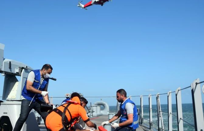 مركز البحث والإنقاذ بوزارة الدفاع ينفذ التجربة ” مصر – 11 ” لمحاكاة إنقاذ ركاب سفينة بعد إصطدامها بسفينة حاويات قبالة سواحل مدينة بورسعيد