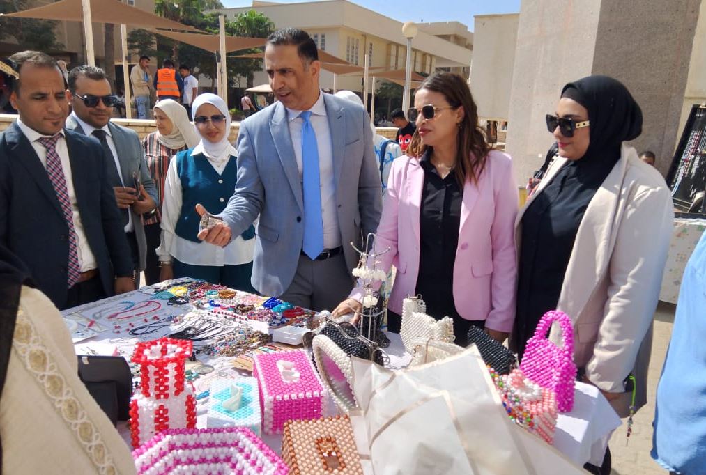 نظمت وحدة التضامن الاجتماعى بالجامعة المعرض السادس للأسر المنتجة ومنتجات الطلاب، الذي افتتحه الدكتور محمد العقبي مساعد وزيرة التضامن الاجتماعي للاتصال الاستراتيجي والإعلام ومنسق عام وحدات التضامن الاجتماعي بالجامعات المصرية، الدكتورة منى أبو هشيمة وكيل كلية التربية لشئون خدمة المحتمع وتنمية البيئة، ويُقام المعرض بقاعة المطعم المركزي داخل الحرم الجامعى فى الفترة من 12 حتى 23 أكتوبر 2025 .