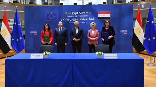 أعقبها لقاء ثنائي بين السيد الرئيس والمسؤولين الأوروبيين، بحضور وزير الخارجية المصري، تلاه توقيع عدد من الاتفاقيات المشتركة.