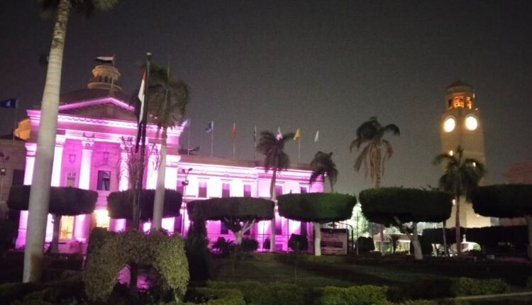 وأضاف رئيس الجامعة أن الإضاءة باللون الوردي ترمز إلى رسالة أمل ودعم لكل السيدات، وتشجع على المبادرة