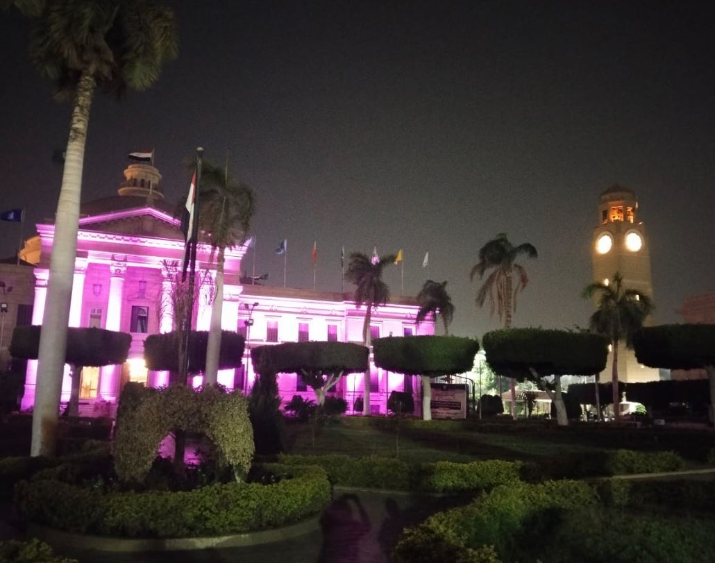 في إطار الدور المجتمعي والتوعوي الذي تضطلع به جامعة القاهرة، وحرصها على دعم المبادرات الصحية والإنسانية، أضاءت الجامعة مبناها التاريخي باللون الوردي، تزامنًا مع فعاليات شهر أكتوبر الوردي المخصص للتوعية بمخاطر سرطان الثدي وسبل الوقاية والكشف المبكر عنه.