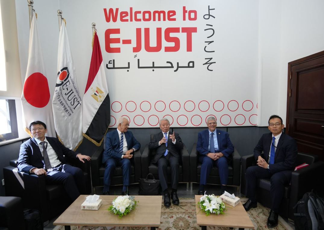 استقبل الدكتور هاني هلال رئيس مجلس أمناء الجامعة المصرية اليابانية للعلوم والتكنولوجيا، والدكتور عمرو عدلي رئيس الجامعة، أمس بمقر الجامعة في برج العرب، البروفيسور أكيهيكو تاناكا رئيس هيئة التعاون الدولي اليابانية (JICA)، ووفد مرافق له رفيع المستوى من هيئة الجايكا بطوكيو ومن مكتب الجايكا بالقاهرة.