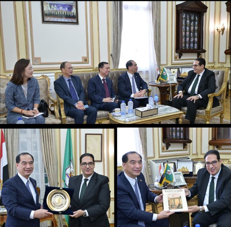 توسيع نطاق التعاون مع جامعة القاهرة في مختلف المجالات لاسيما الآثار، والذكاء الاصطناعي، والطب، وتبادل