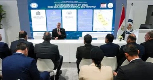 عن طرح مزايدة عالمية جديدة للبحث والاستكشاف عن البترول والغاز في 4 مناطق بالبحر الأحمر.