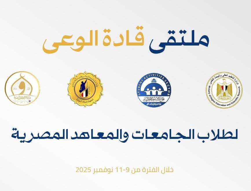 ينظم قطاع الأنشطة الطلابية ومعهد إعداد القادة برنامج “ملتقى قادة الوعي لطلاب الجامعات والمعاهد المصرية” خلال الفترة من ٩ إلى ١١ نوفمبر ٢٠٢٥، بهدف تعزيز الوعي الوطني لدى الشباب الجامعي، وتنمية قدراتهم، وتصحيح المفاهيم الخاطئة، وترسيخ مبادئ الحوار البنّاء والانتماء الوطني.