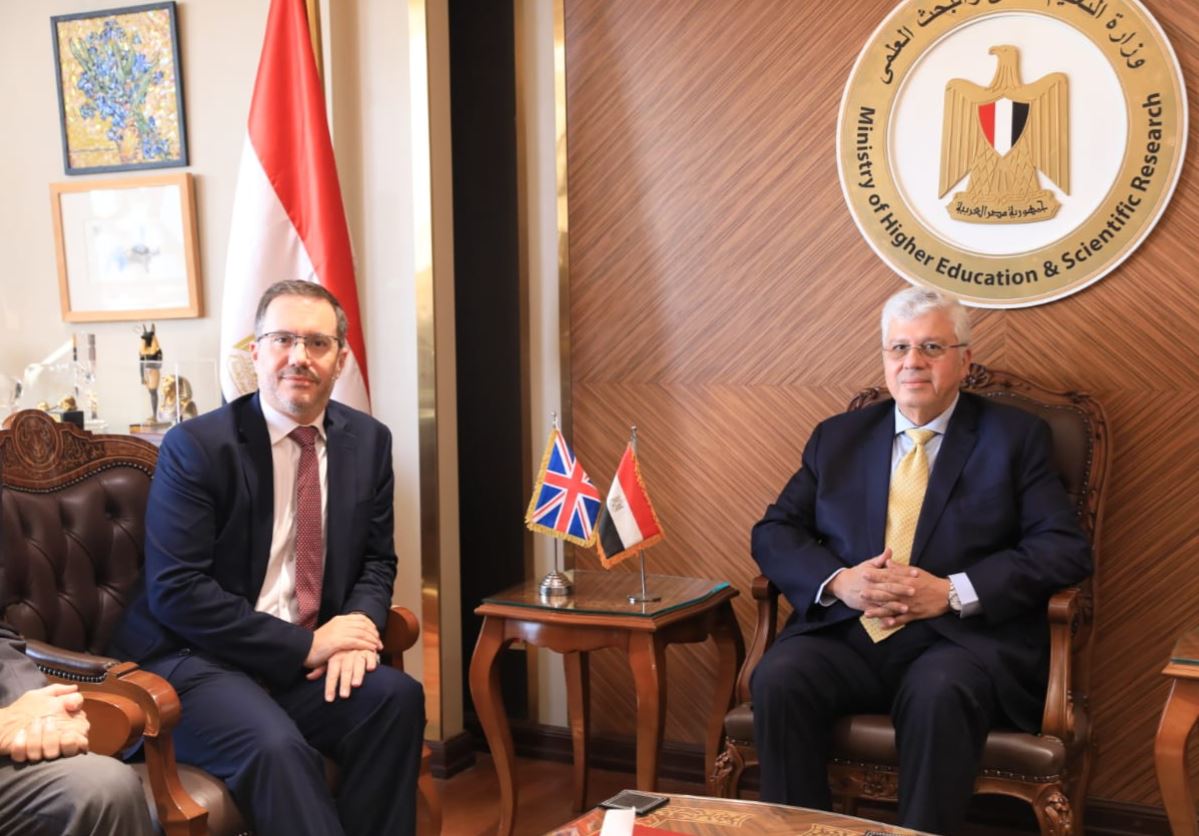 التقى الدكتور أيمن عاشور، وزير التعليم العالي والبحث العلمي، بالسيد/ مارك بريسون ريتشاردسون السفير البريطاني بالقاهرة؛ لبحث آفاق التعاون المشترك بين الجانبين، مع التركيز على التوسع في الفروع الدولية للجامعات، وتعزيز التعاون في مجال التعليم التكنولوجي.