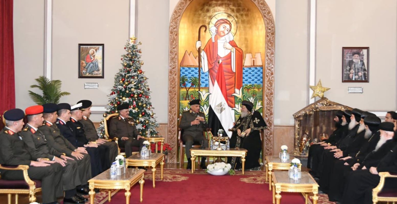 قام الفريق أول عبد المجيد صقر القائد العام للقوات المسلحة وزير الدفاع والإنتاج الحربى يرافقه الفريق أحمد خليفة رئيس أركان حرب القوات المسلحة وقادة الأفرع الرئيسية وعدد من قادة القوات المسلحة بتقديم التهنئة لقداسة البابا تواضروس الثانى بابا الإسكندرية وبطريرك الكرازة المرقسية بمناسبة عيد الميلاد المجيد وذلك بمقر الكاتدرائية المرقسية بالعباسية .