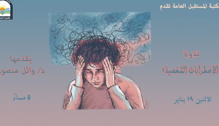 تنظم مكتبة المستقبل احدى المنصات الثقافية بجمعية مصر الجديدة ، فى الساعة الخامسة من مساء بعد غد الاثنين ، ندوة بعنوان “الاضطرابات الشخصية” يحاضر فيها الدكتور وائل منصور ، دكتوراه الصحة النفسية والإرشاد النفسي جامعة عين شمس استشاري الطب النفسي والطب السلوكي للطب النفسي.