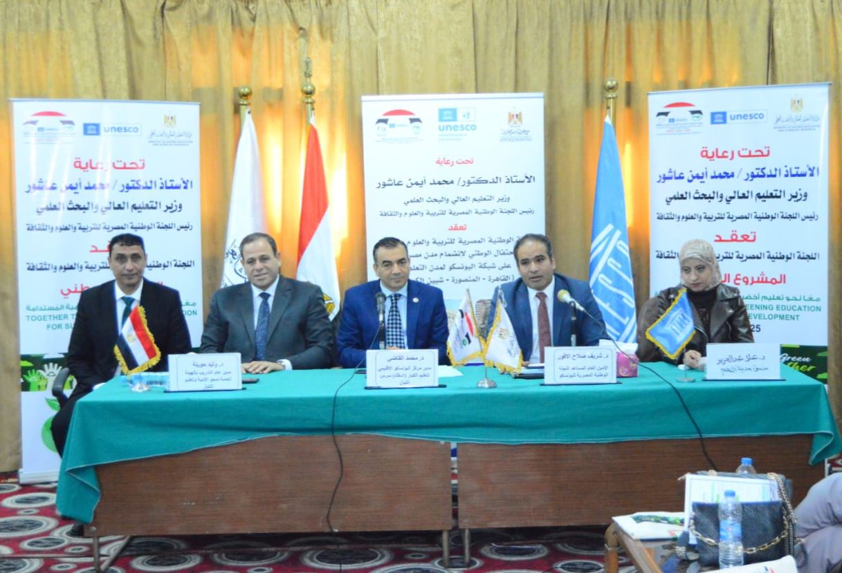 تحت رعاية الدكتور أيمن عاشور وزير التعليم العالي والبحث العلمي ورئيس اللجنة الوطنية المصرية لليونسكو، وبإشراف الدكتور أيمن فريد مساعد الوزير ورئيس قطاع الشئون الثقافية والبعثات والمشرف على اللجنة الوطنية المصرية لليونسكو، عقدت اللجنة الوطنية ورشتي عمل وطنيتين تدريبيتين، كمرحلة ثانية من المشروع الوطني “معًا نحو التعليم الأخضر من أجل التنمية المستدامة”، والذي وافقت منظمة اليونسكو على تنفيذه في إطار برنامج المساهمة، بهدف توطين مفاهيم وأدوات التعليم الأخضر في التعليم النظامي وغير النظامي، بصورة تجمع بين الجانبين النظري والتطبيقي.