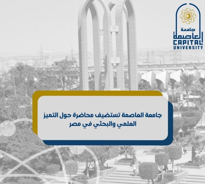في إطار حرص جامعة العاصمة على تعزيز دورها العلمي والبحثي، تنظم الجامعة محاضرة علمية متميزة بعنوان: «جامعة العاصمة ودورها في التميز العلمي والبحثي في مصر» ، تحت رعاية الدكتور السيد قنديل رئيس الجامعة والدكتور عماد أبو الدهب نائب رئيس الجامعة للدراسات العليا والبحوث .