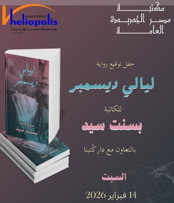 تنظم مكتبة مصر الجديدة العامة فى السادسة من مساء اليوم السبت ، حفل توقيع ومناقشة رواية ” ليالى ديسمبر” للكاتبة بسنت سيد