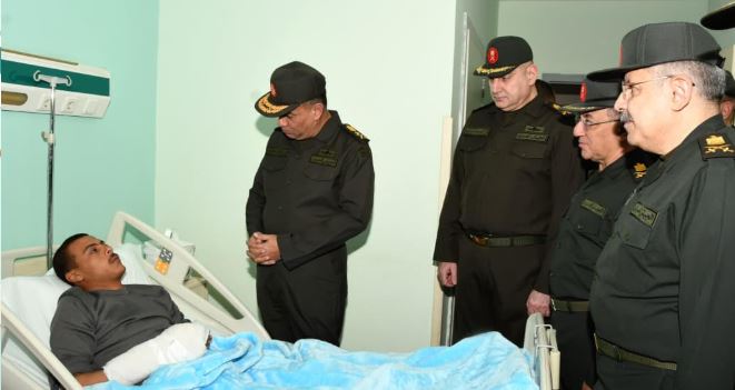 الفريق أشرف سالم زاهر القائد العام للقوات المسلحة وزير الدفاع والإنتاج الحربى يزور عدد من المصابين بمجمع الجلاء الطبى للقوات المسلحة