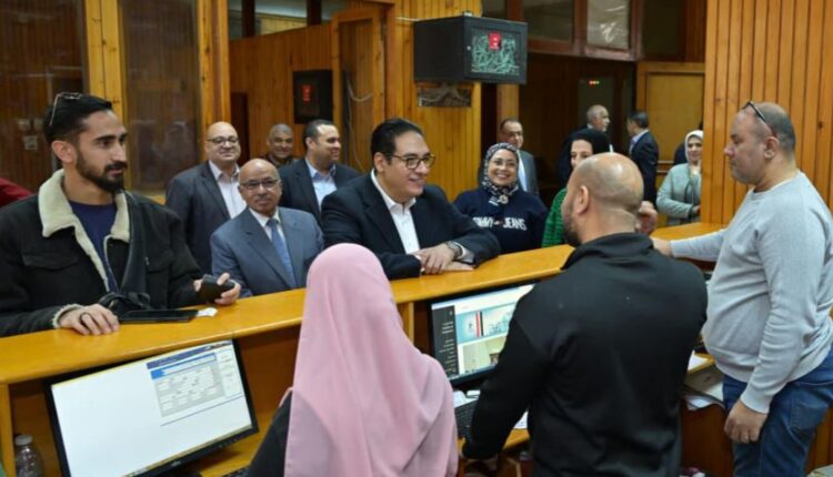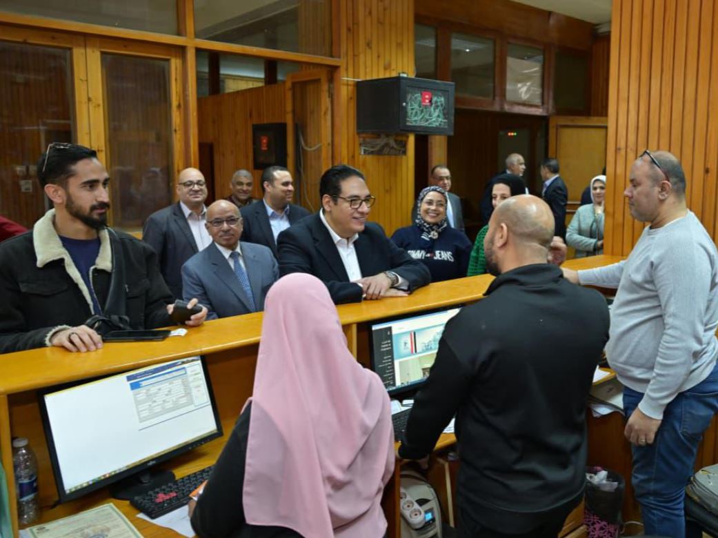 كما شملت الجولة تفقد إدارات شئون الطلاب والوافدين بكليتي الحقوق والتجارة، حيث اطلع على آليات تقديم