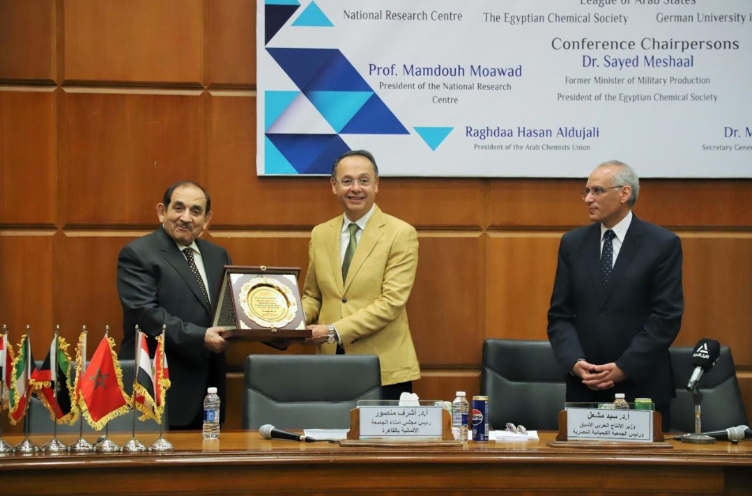 في إطار تعزيز دور المؤسسات الأكاديمية في مواكبة التحولات العلمية العالمية، شارك الأستاذ الدكتور أشرف منصور، رئيس مجلس أمناء الجامعة الألمانية بالقاهرة، في فاعليات أنطلاق المؤتمر الدولي العشرين لاتحاد الكيميائيين العرب، تحت عنوان: «الابتكار في الكيمياء ودور الذكاء الاصطناعي من أجل الاستدامة وبناء مستقبل أكثر خضرة ” والذي استضافه المركز القومي للبحوث، بالتعاون مع الجمعية الكيميائية المصرية و جامعة الدول العربية ، وبمشاركة نخبة من القيادات العلمية، وهم الأستاذ الدكتور سيد مشعل، رئيس الجمعية الكيميائية المصرية ووزير الإنتاج الحربي الأسبق ، الأستاذ الدكتور ممدوح معوض، رئيس المركز القومي للبحوث، الوزير المفوض نوال برادة مدير إدارة منظمات المجتمع المدني بجامعة الدول العربية، و الأستاذ الدكتور عبدالرحمن الورثان رئيس اللجنة العلمية لمؤتمر اتحاد الكيميائيين العرب ،والأستاذ الدكتور محمد هاشم نائب رئيس الجمعية الكيميائية المصرية ورئيس المركز القومي للبحوث السابق، إلى جانب عدد كبير من العلماء والباحثين من مختلف الدول العربية ، وذلك برعاية الأستاذ الدكتور عبدالعزيز قنصوة وزير التعليم العالي والبحث العلمي.